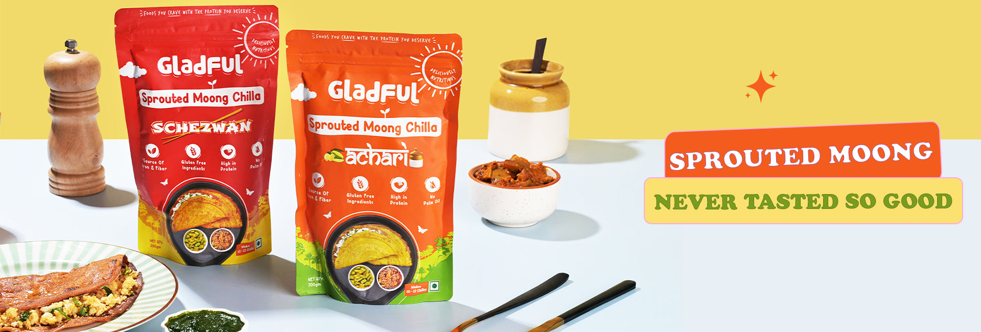 All items in our Sprouted Breakfast Range are gluten-free and vegan. They're crafted with sprouted legumes and millet, without any maida or trans-fats. This range offers a variety of Sprouted Chillas, Dosas, and millet-based pancakes.