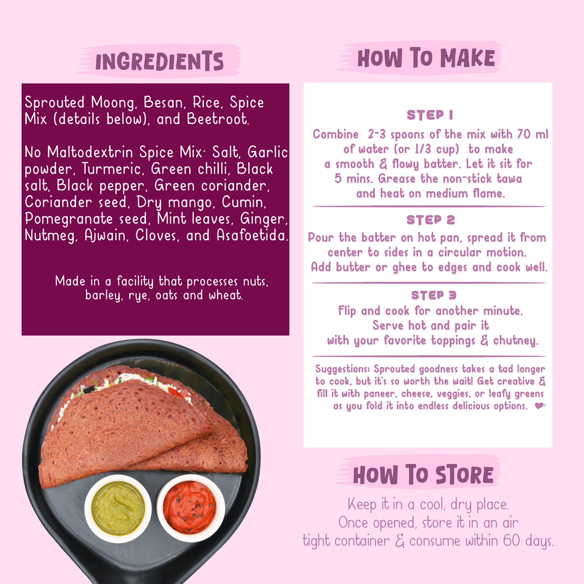 Beetroot Sprouted Moong Dal Chilla - 200gms