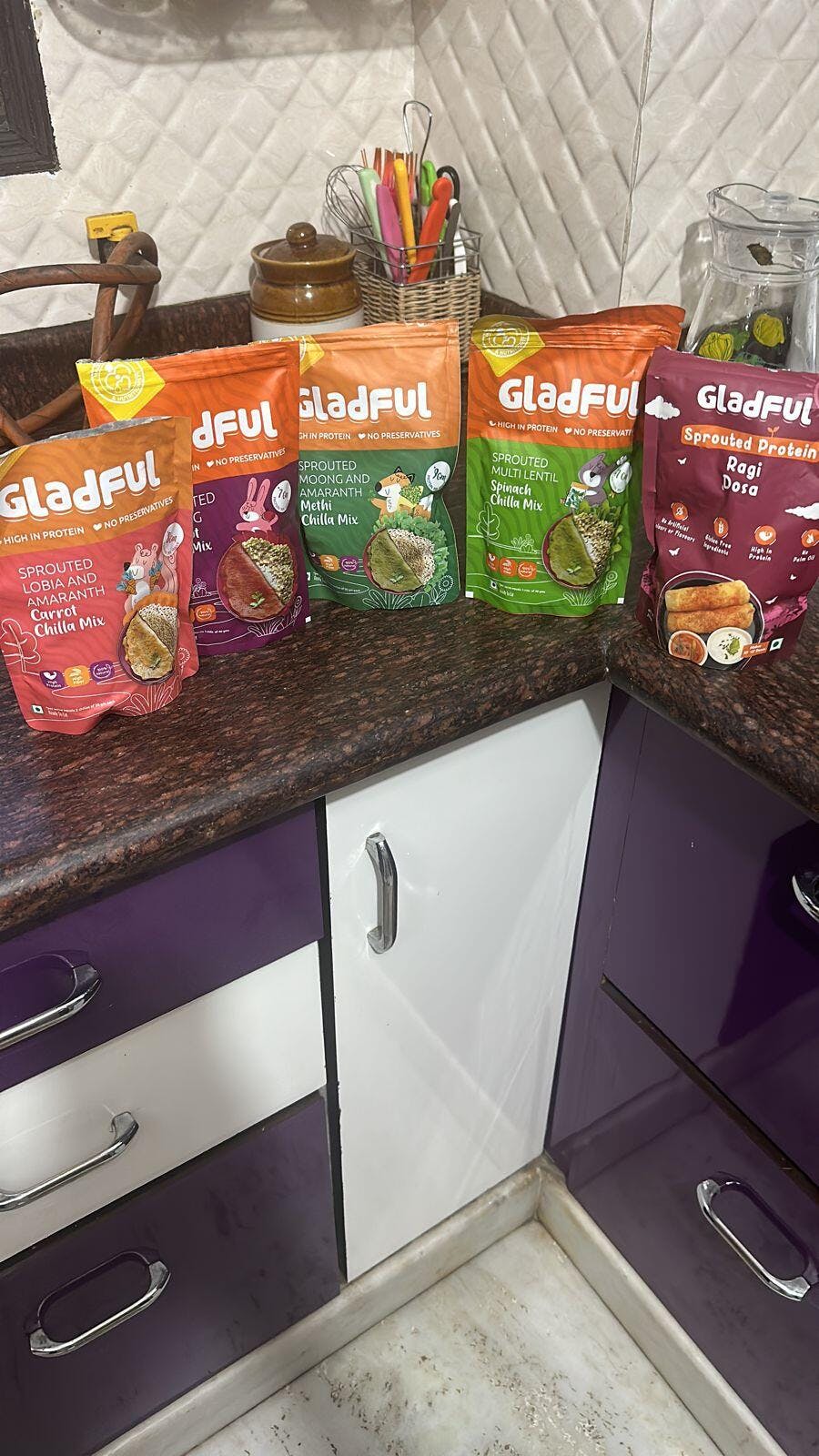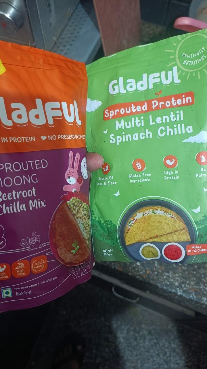 Hi! Our Sprouted Breakfast Range has 100% Gluten-free ingredients  & is Vegan made with sprouted legumes & millet. This entire range has products with zero maida or trans-fats. Perfect solution for your family's everyday breakfast. Our chillas come in four different flavors Beetroot, Spinach, Methi, and carrot.  Our Sprouted Dosas are made with two key ingredients Ragi & Amaranth. Our Lobia & Millets Pancakes come in two flavors Banana & Choco-Banana Pancake.