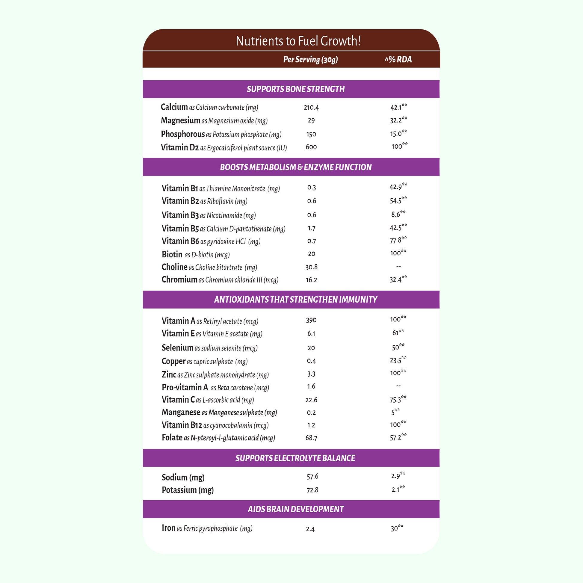 • Bone Health Support: Rich in calcium and vitamin D2, covering 100% of the daily intake for strong bones and teeth