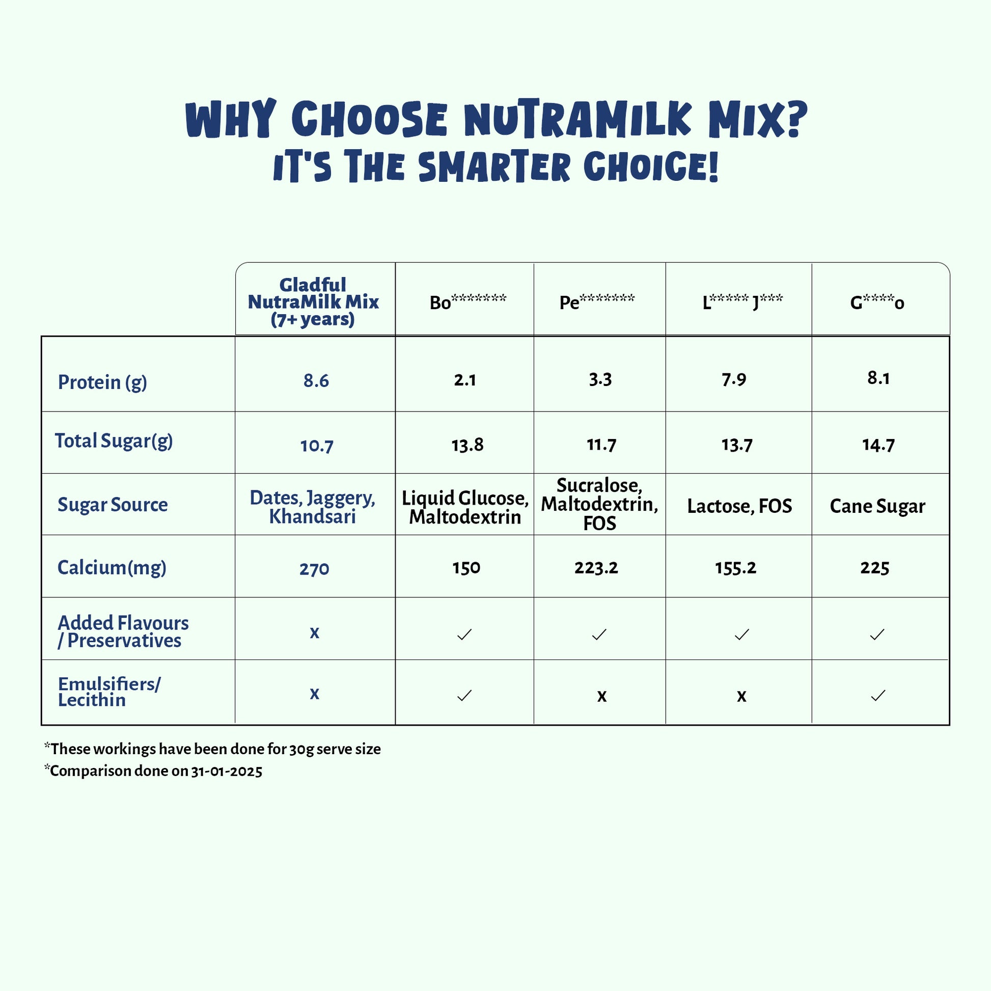 NutraMilk Mix is different because it’s free from preservatives, additives, and emulsifiers, which are commonly found in most milk mixes. Additionally, we focus on meeting your child’s protein needs, offering significantly higher protein content compared to most brands in the market.